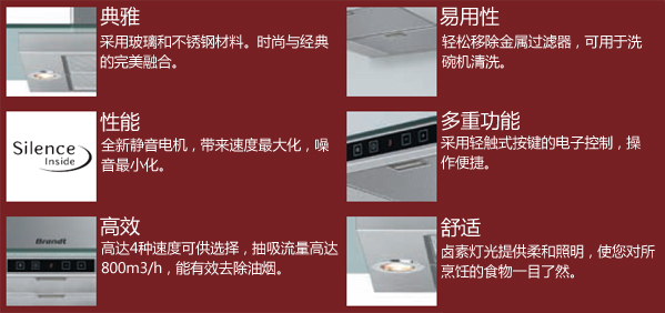 Brandt 法国白朗 AD991XC 进口吸油烟机 T型 中式 可拆洗
