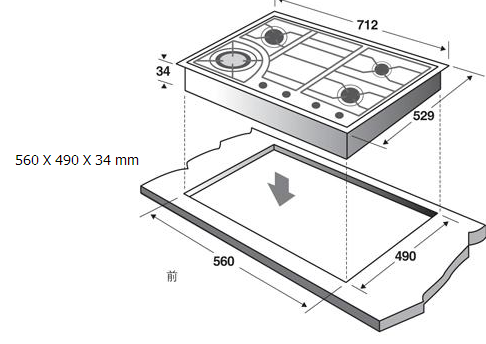 嵌入尺寸:(宽X深X高)560*490*34MM
